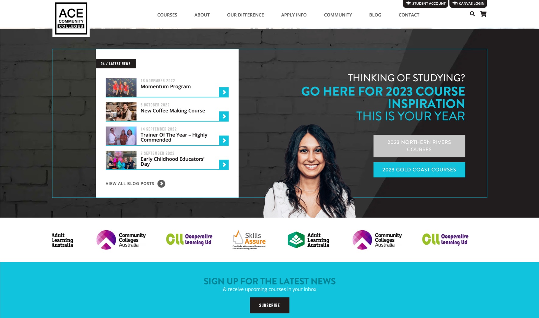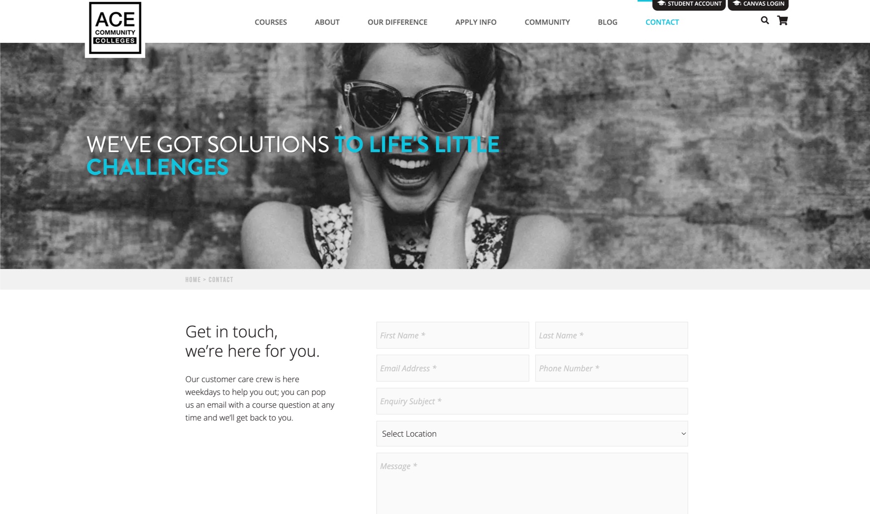 ACE Community College was looking for a complete rebuild with a modern, stable platform capable of showcasing courses at various college locations with the ability for users to enrol and pay for their chosen course. ACE wanted something new and refreshing. They came to the right place! The website is filled with vibrant and lively imagery, complemented by a calm and confident colour scheme. There are various animations to keep the user intrigued and an Ajax loading blog that is fun to navigate through. The aim was to keep the site youthful, fun and positive and to widen their demographic. Check it out!