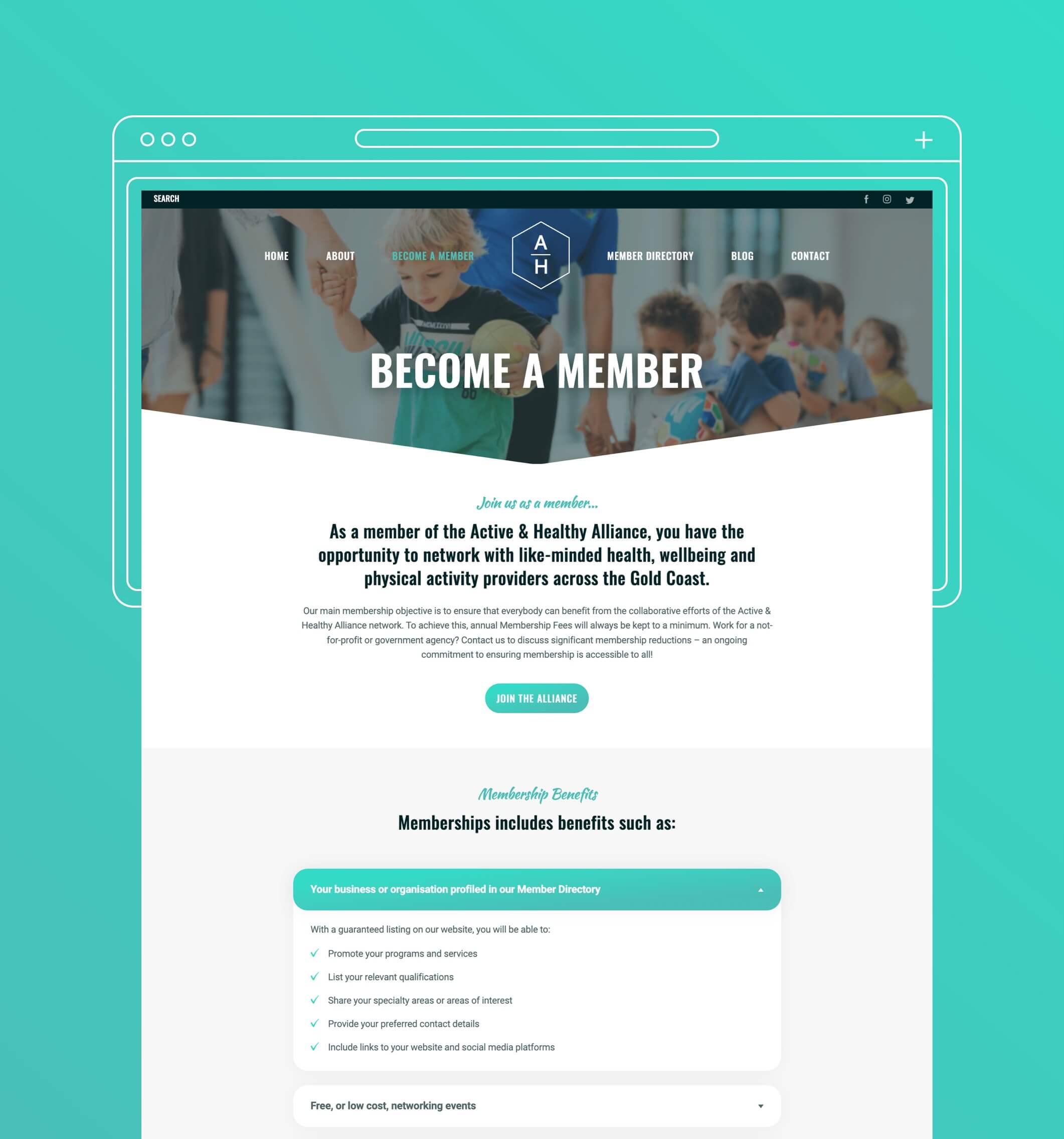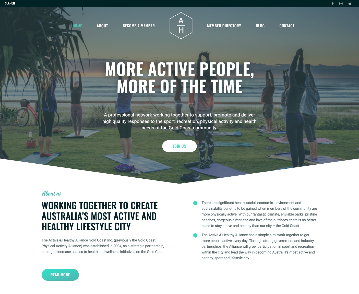 Active & Healthy Alliance is a professional network working together to support, promote, and deliver high-quality responses to the health needs of the Gold Coast community. The Active & Healthy Alliance has a simple aim: to get more people active every day. They wanted a clean website to display a range of services and resources aiming to attract government and industry partnerships. We created a striking website with crisp imagery, custom graphics, and subtle animations. The platform we built is user-friendly design allowed visitors to find relevant information and navigate throughout the site quickly.