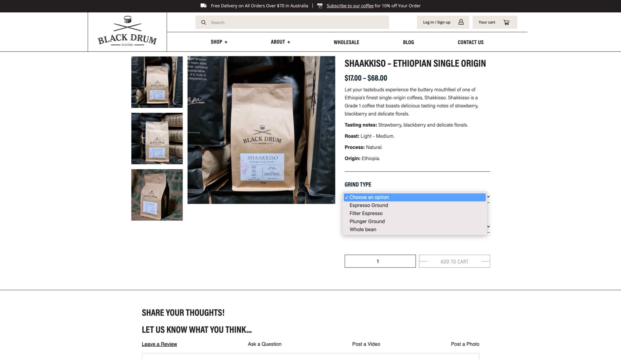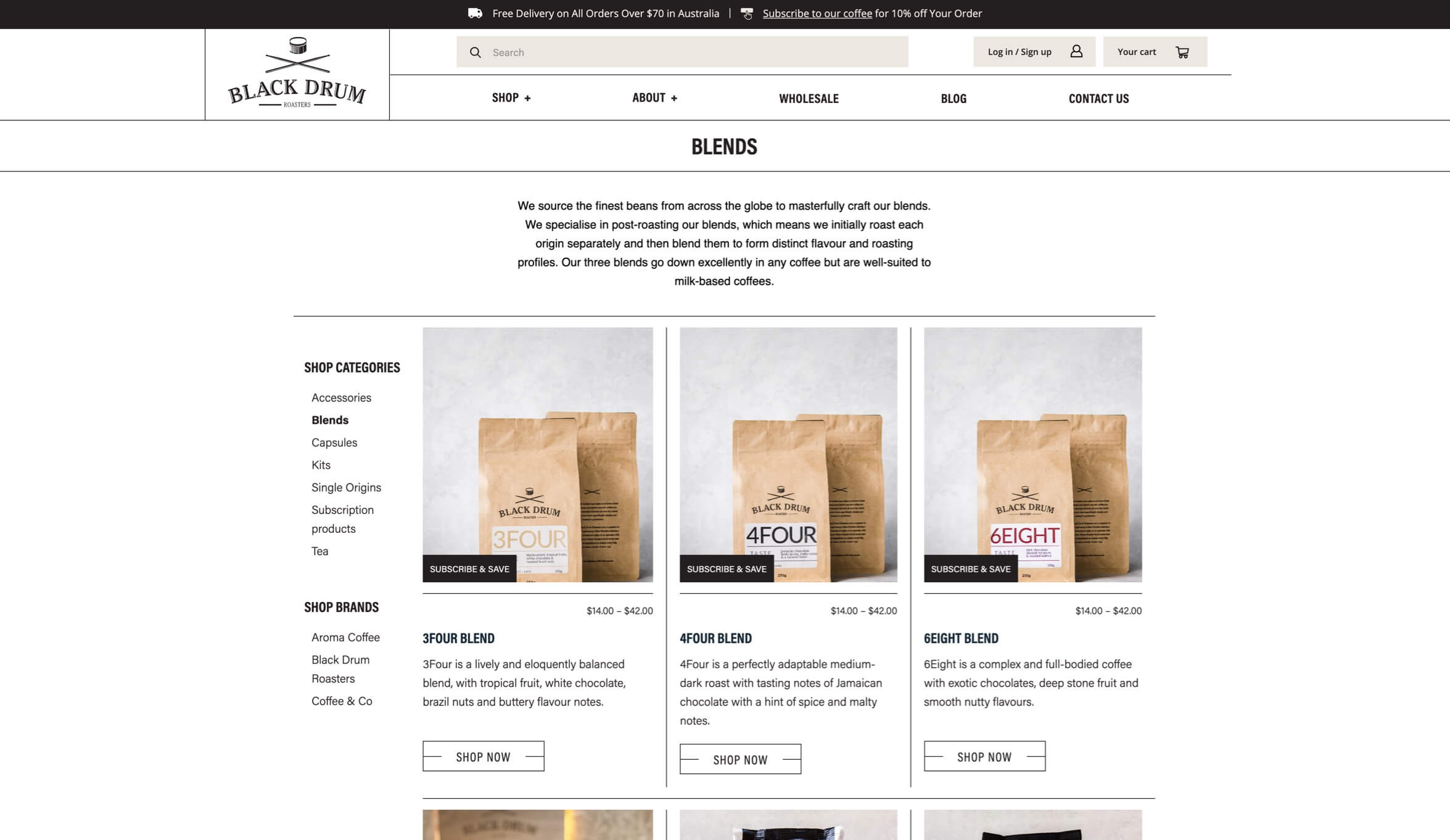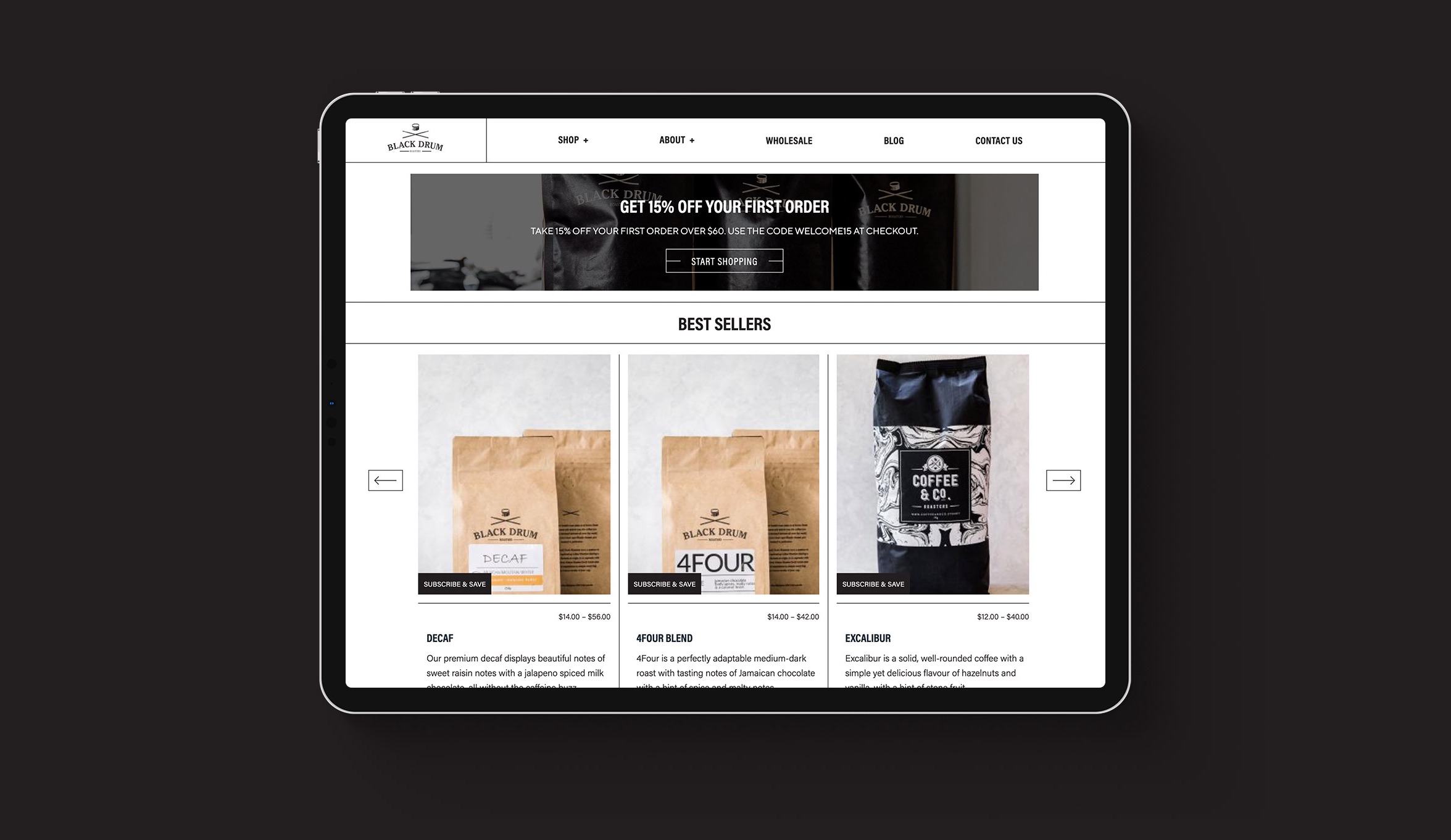 Thrive Digital created a high-performing e-commerce website that is simple to navigate and ensures customers can easily find and purchase Black Drum Roasters coffee and accessories.