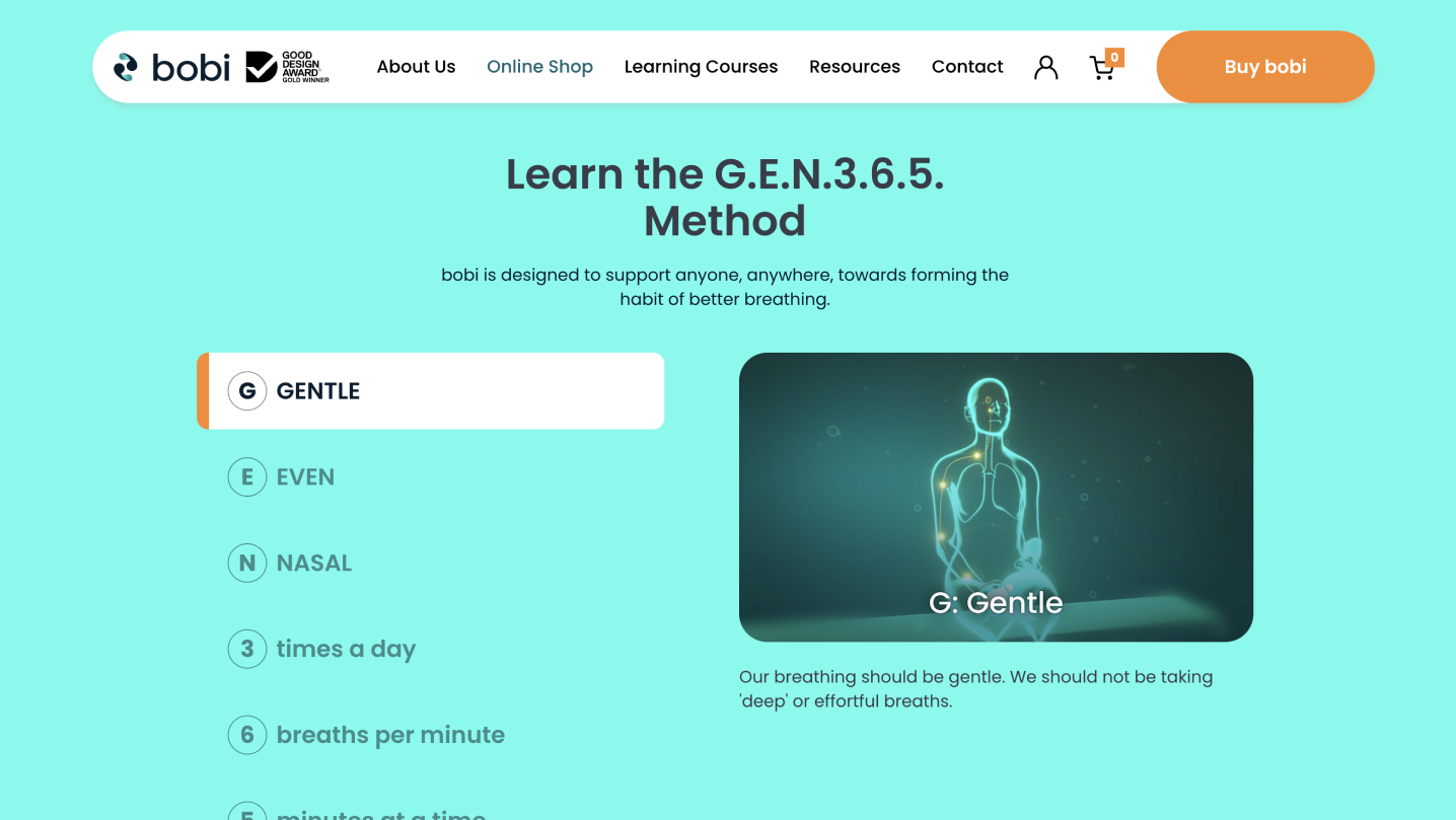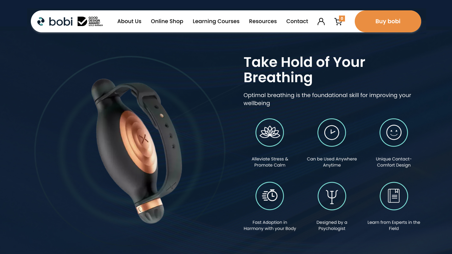bobi, a tactile and responsive aid, was invented by psychologist Damien Thomas, who observed many of his clients struggling to develop and keep good breathing habits. Damien approached Thrive Digital to create a dynamic website that captured the potential of bobi and demonstrated bobi's benefits to an online audience.