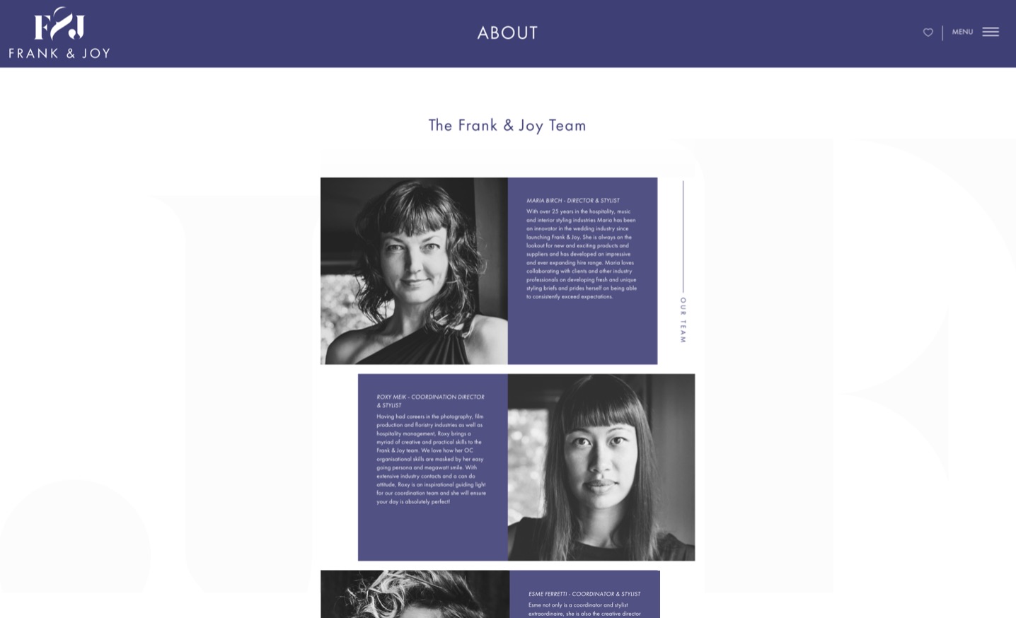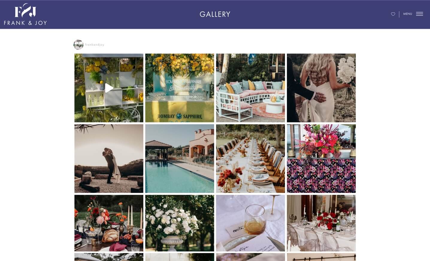 Frank & Joy are elegant, first class wedding planners situated in Byron Bay, specialising in hire, events, weddings and styling. By curating and refining clients collection of instagram and pinterest inspiration images, they combine everything into a unique and clear brief that reflects who their clients really are, bringing their dreams and aspirations to life as well as fitting into their budget. They approached Thrive for logo, branding and website design. Through the use of elegant and refined branding and clean web design, Thrive has created a user-friendly website that portrays the creative essence of Frank & Joy.