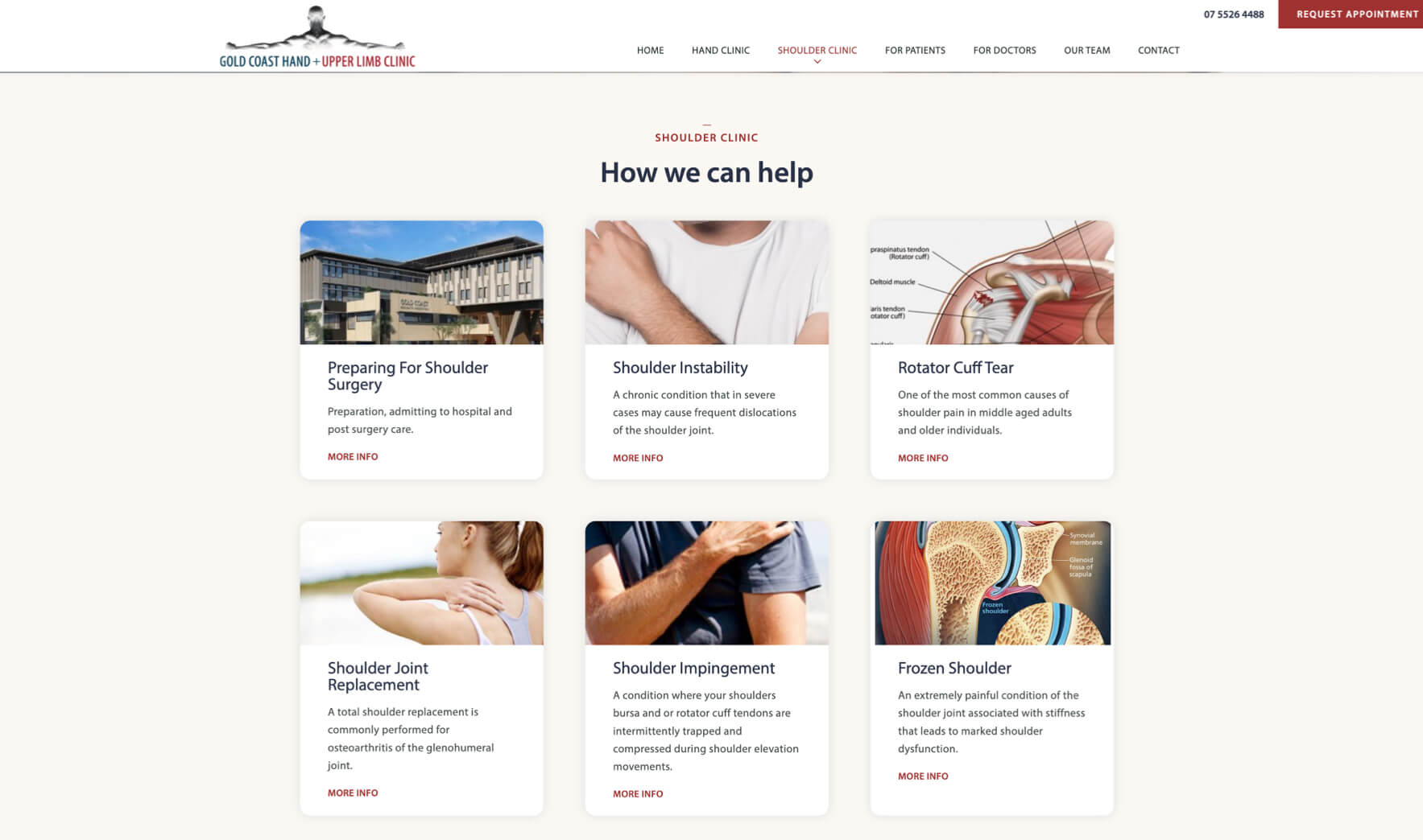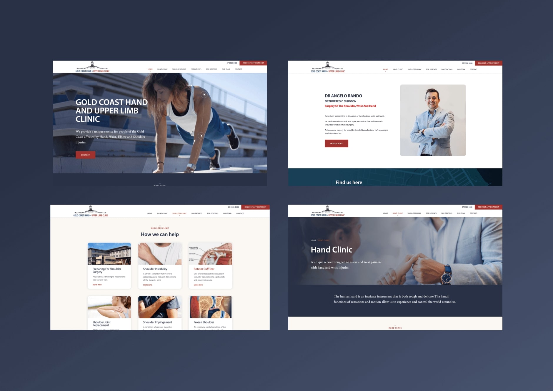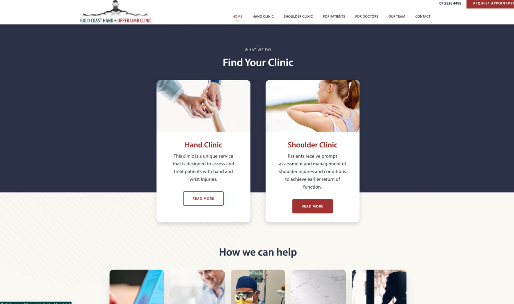 A local clinic provides a team approach to rehabilitation with specialist input for all hand and shoulder injuries, a unique service with a multidisciplinary team approach. Gold Coast Hand And Upper Limb Clinic approached Thrive for a refreshed website that quickly allows visitors to find relevant information and navigate throughout the site. We created a site bright with a sophisticated colour scheme and fonts, professional and photos to attract the user attention to promote the extensive experience of the clinic.