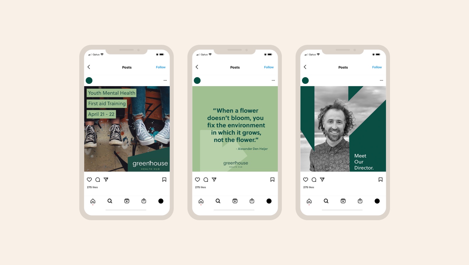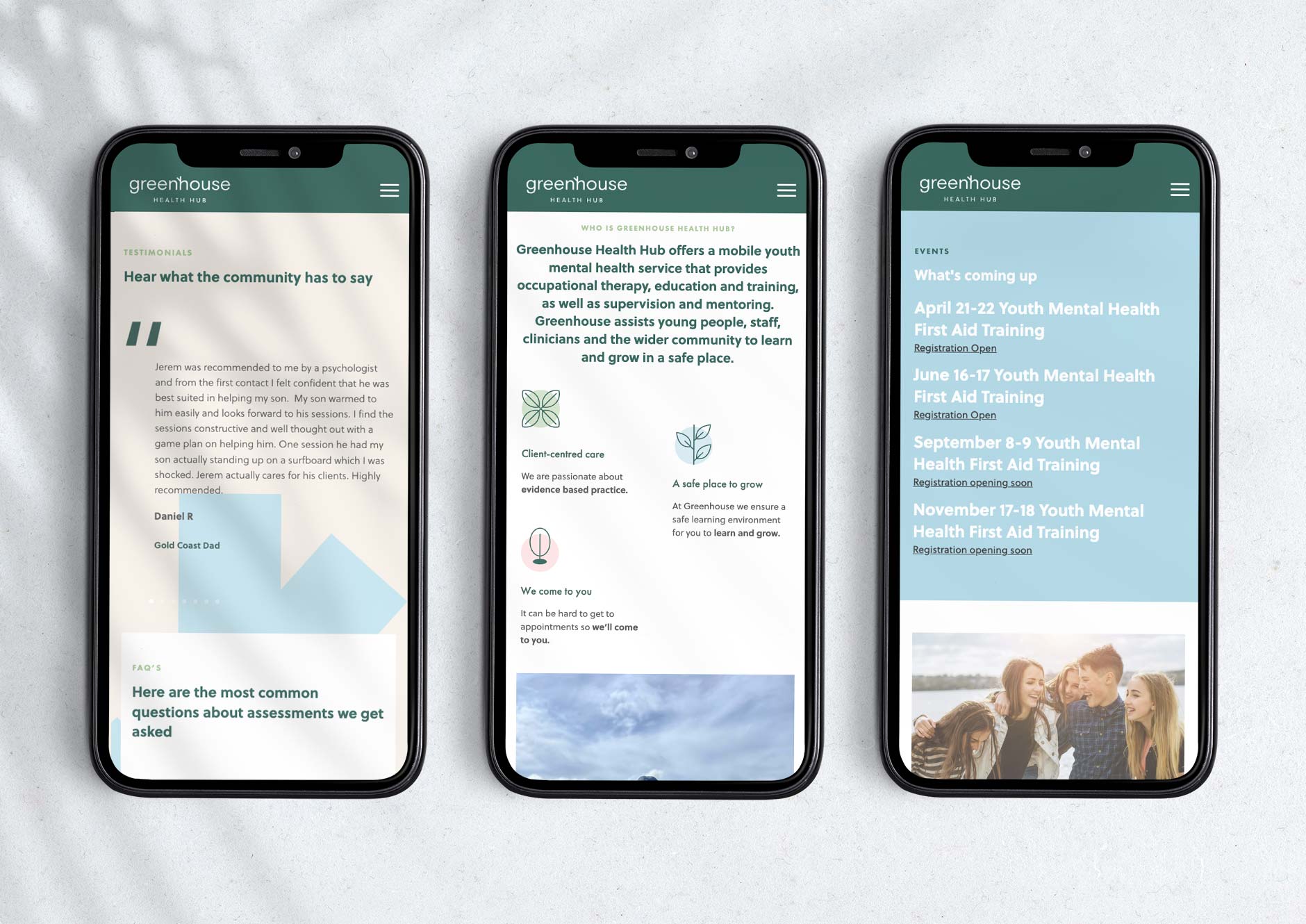 With Greenhouse Health Hub’s mission in mind, we created a branding guide that blended seamlessly with their business identity. With a focus on occupational therapy and youth mental health, we created a positive, inclusive and inviting brand identity by using warm, natural colours and tones. When it came to creating the logo, we opted for a clean, rounded, serif font that was simple to read, yet also evoked their positive messaging and inclusivity.