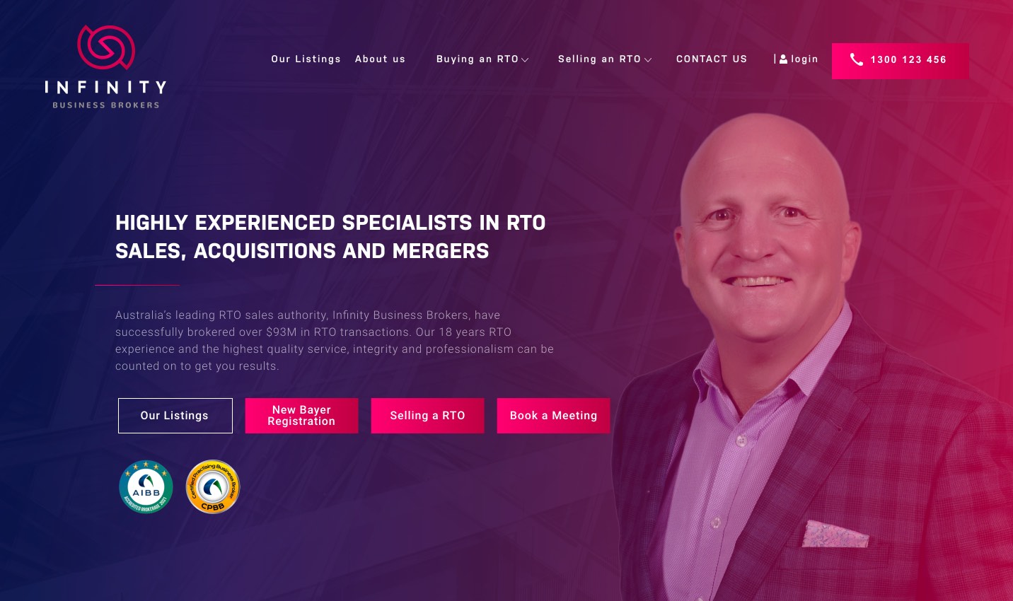 Highly experienced specialists in registered training organisation Sales, Acquisitions and Mergers, Infinity Business Brokers are Australia’s leading RTO sales authority. With 18 years of experience, they promise clients the highest quality service, integrity, professionalism, and desired results. In 2018, the team came to Thrive to completely rebrand and to create a website showcasing their experienced services. Our designers worked hard to create a strong logo and online presence for the new brand, while our developers enhanced and modernised a digital portfolio space. We created a site bright with striking gradients, professional photos user-friendly layouts allowing visitors to find relevant information and navigate throughout the site quickly.
