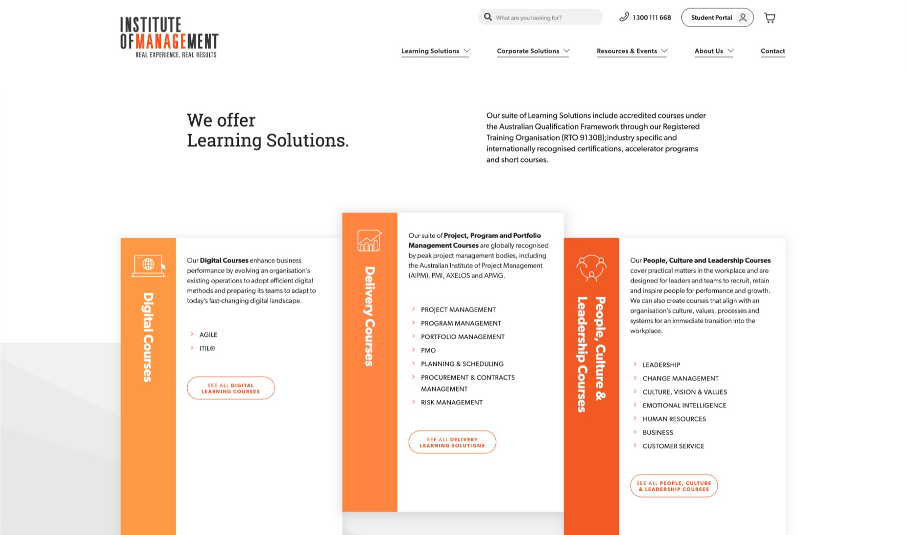 The Thrive Digital design team created a professional website to capture The Institute of Management’s corporate values and commitment to modern training solutions. With multiple pages and tabs we were able to highlight The Institute of Management’s extensive experience and allow students to easily purchase courses online.