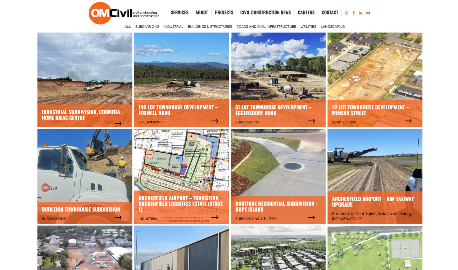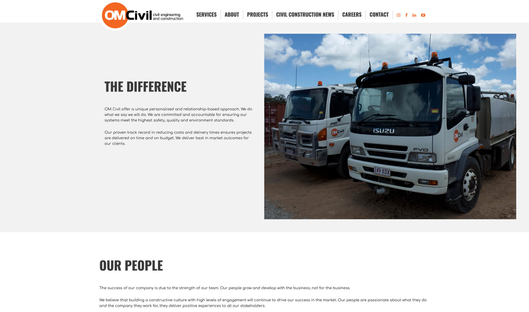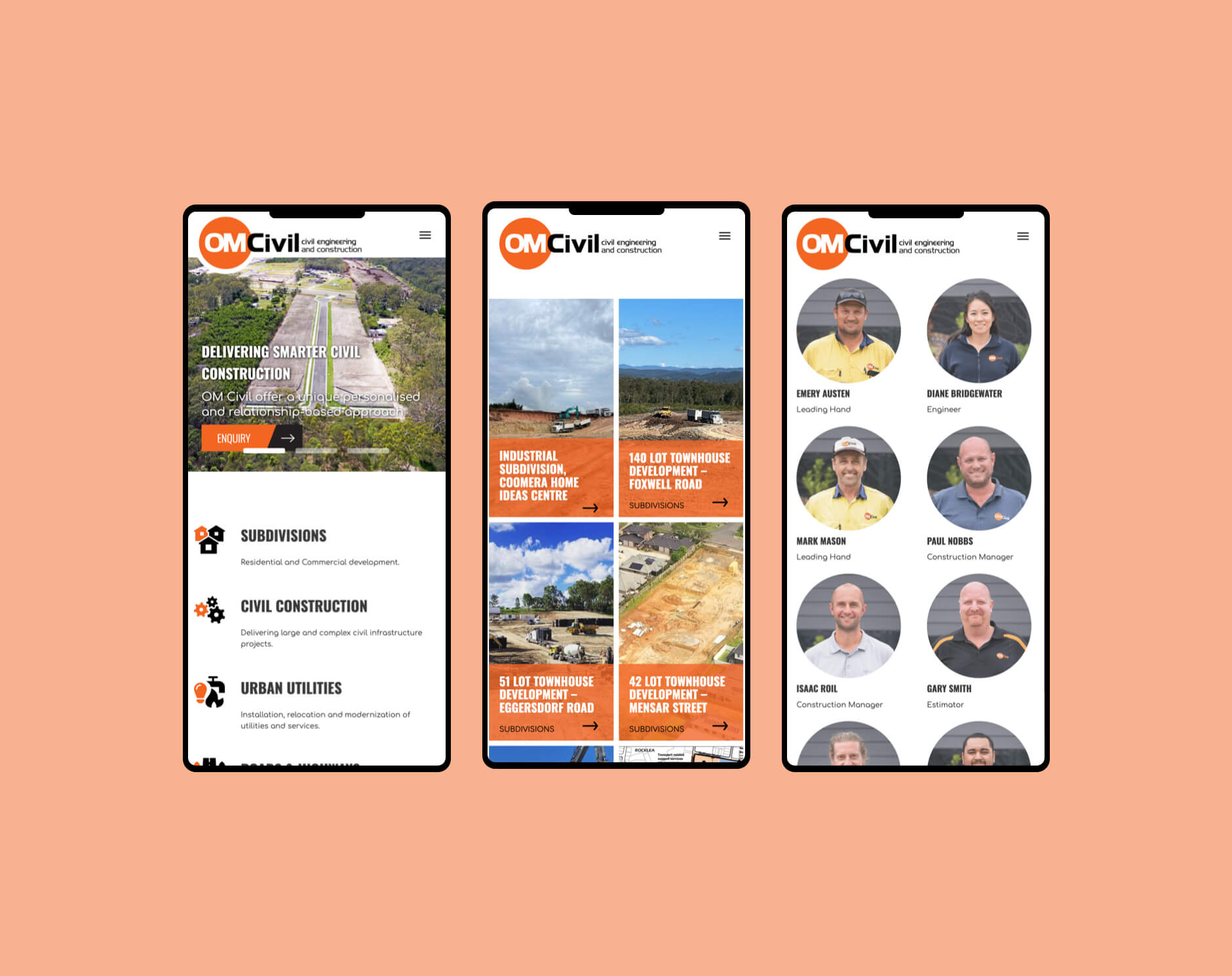 A Gold Coast family-owned civil construction company, the highly experienced leadership team focuses on possible outcomes for every project. OM Civil offers a unique personalised and relationship-based approach and crew who are committed and accountable. When OM Civil approached Thrive to redesign their site, we knew the web design needed to be clean, strong, and user-friendly, portraying its reliability. Most importantly, the new site navigation needed to allow visitors to find relevant information quickly and without effort.