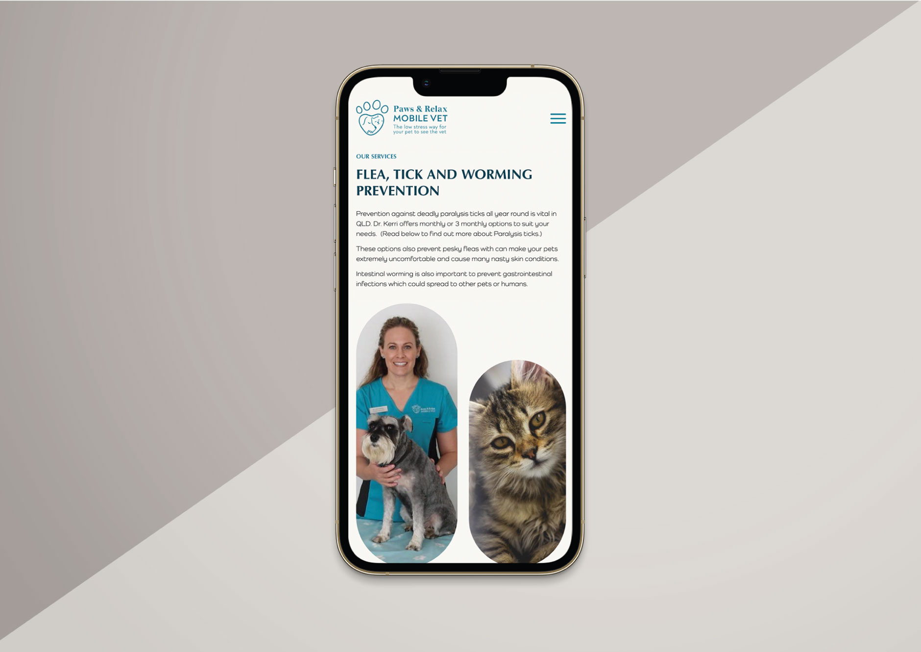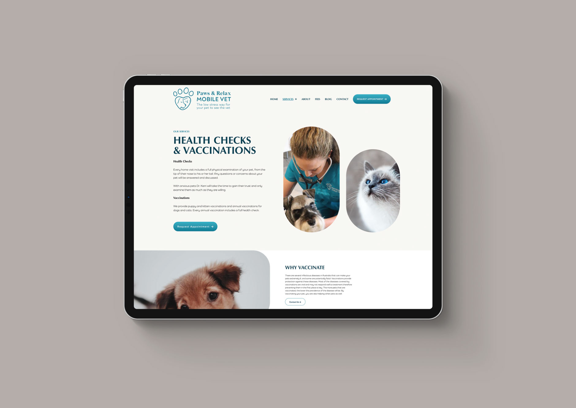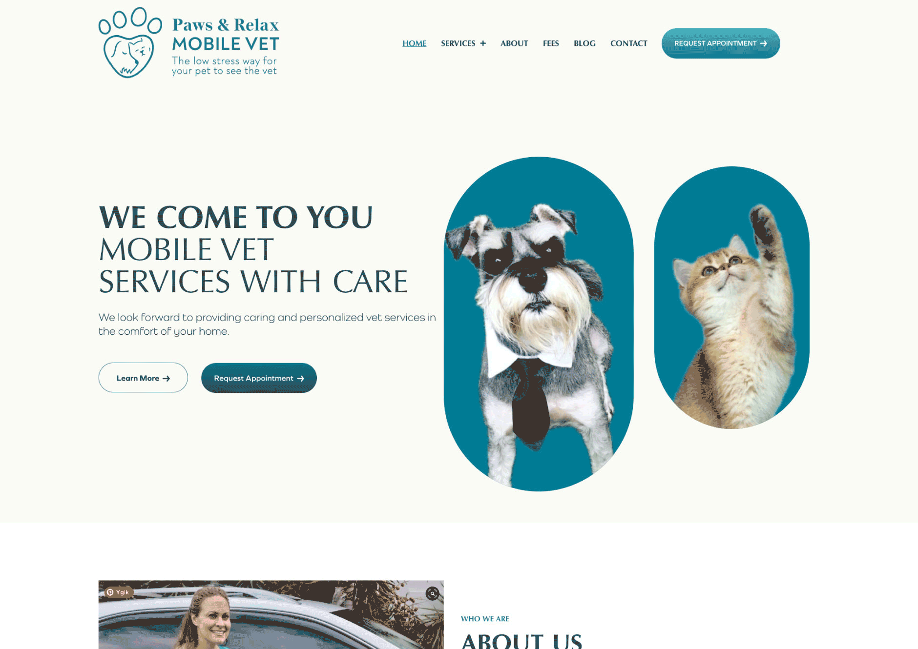 With her dedication and compassion for animals in mind, we created a branding guide that blended seamlessly with her vision. We opted for a colour scheme that evoked a feeling of calm and compassion as well as a sense of playfulness. For the logo, our designer hand drew the owner’s beloved schnauzer, incorporated with an image of a cat in a heart.