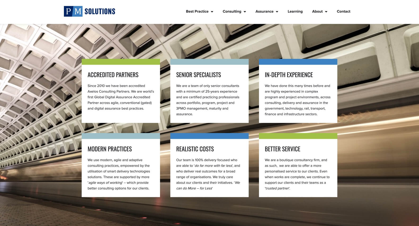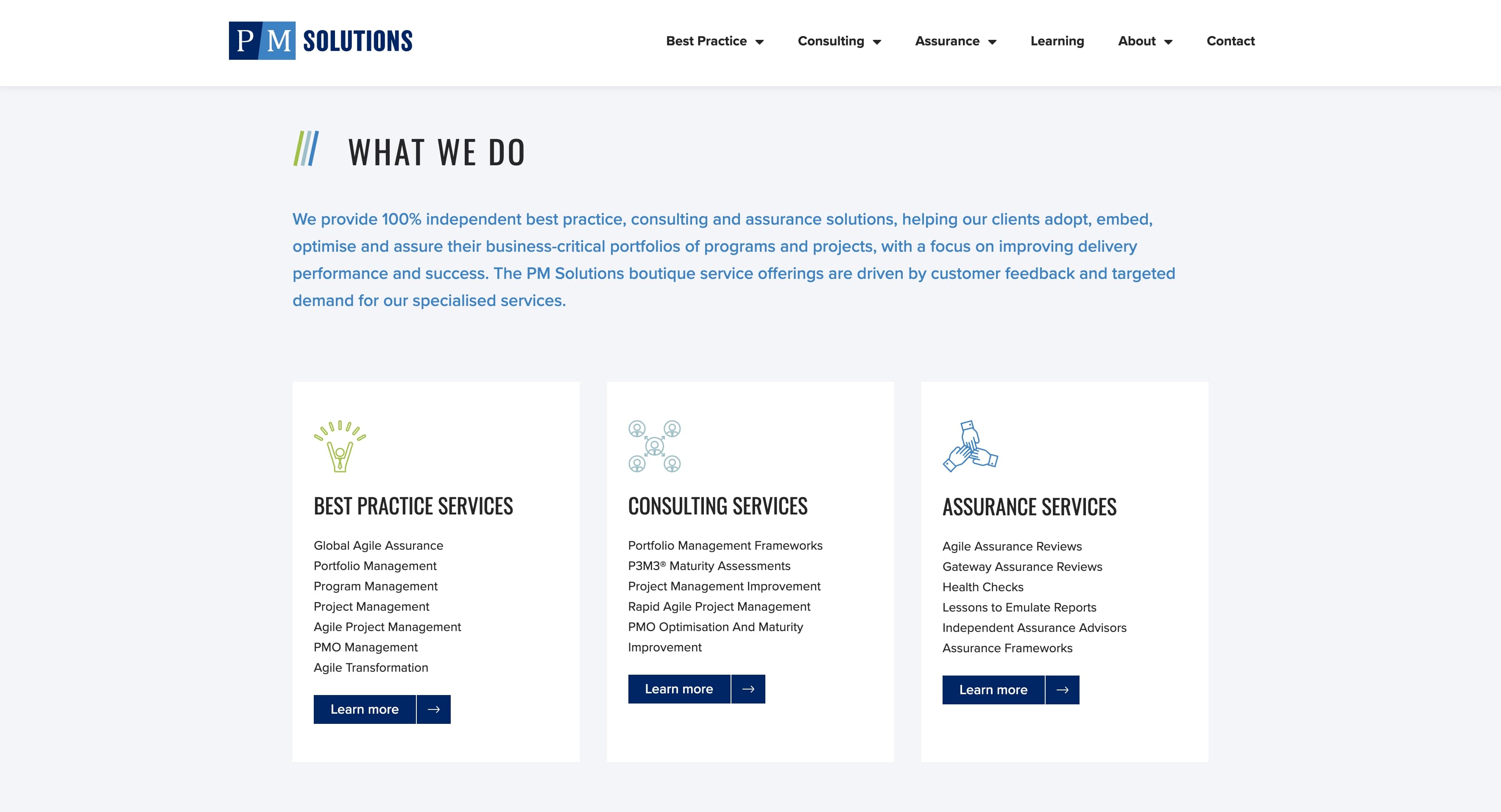 For PM Solutions we created clean, consistent branding, choosing a blue, white and green colour palette and a simple yet powerful logo design. Versatile and flexible, the branding design includes a suite of custom icons, reflecting professionalism, experience and strength.