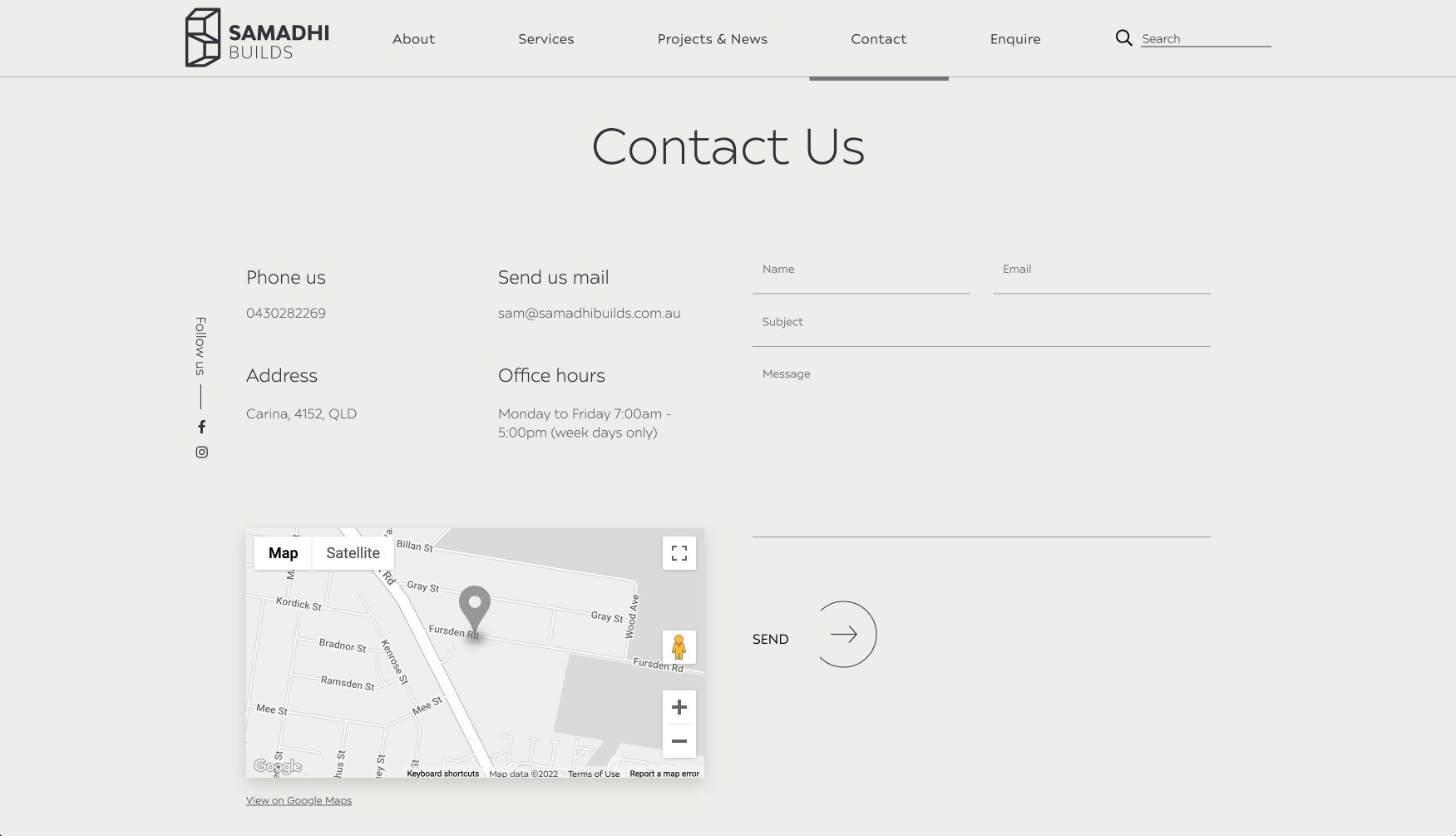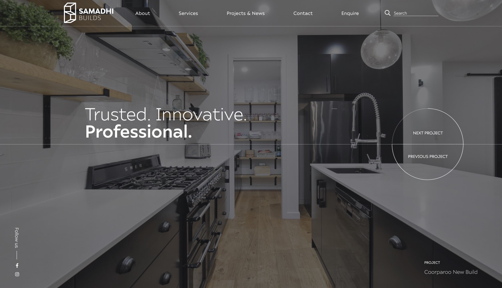 Samadhi’s website focuses on a strong hierarchy to allow clients to navigate through the content with ease and find the information to them. The use of a consistent black and white palette and lineal buttons makes the site feel clean and sophisticated, building a strong eternal recognition for Samadhi Builds.