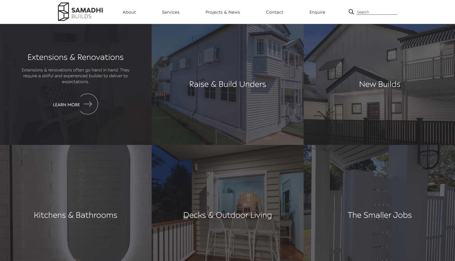 Samadhi Builds is a boutique building company servicing Brisbane and surrounds, who through their gold standards in architecture and build, are proud to put their name to every project they undertake. The team at Samadhi approached Thrive for logo, branding, and website design, and since that first phone call we have enjoyed working together to create a unique personality and online presence, allowing Samadhi Builds to really stand out from the crowd.