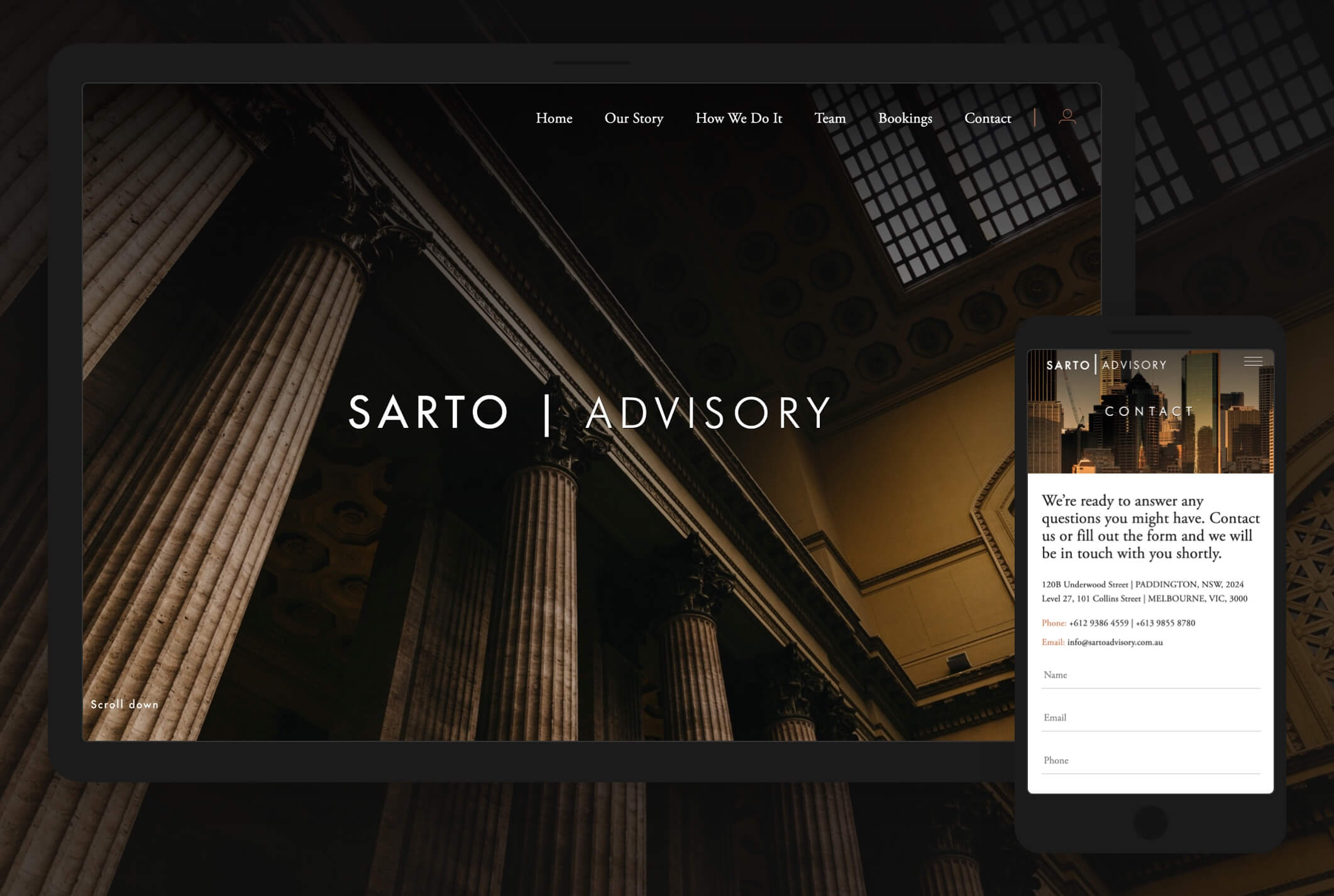 Sarto Advisory is a wealth management business based in Melbourne, using cutting-edge technology to deliver outstanding outcomes for clients. Therefore trust, transparency and integrity needed to be reflected throughout the online presence. We created a modern, dark interface to match their elegant branding to maximise customer assurance and give Sarto Advisory a competitive edge.