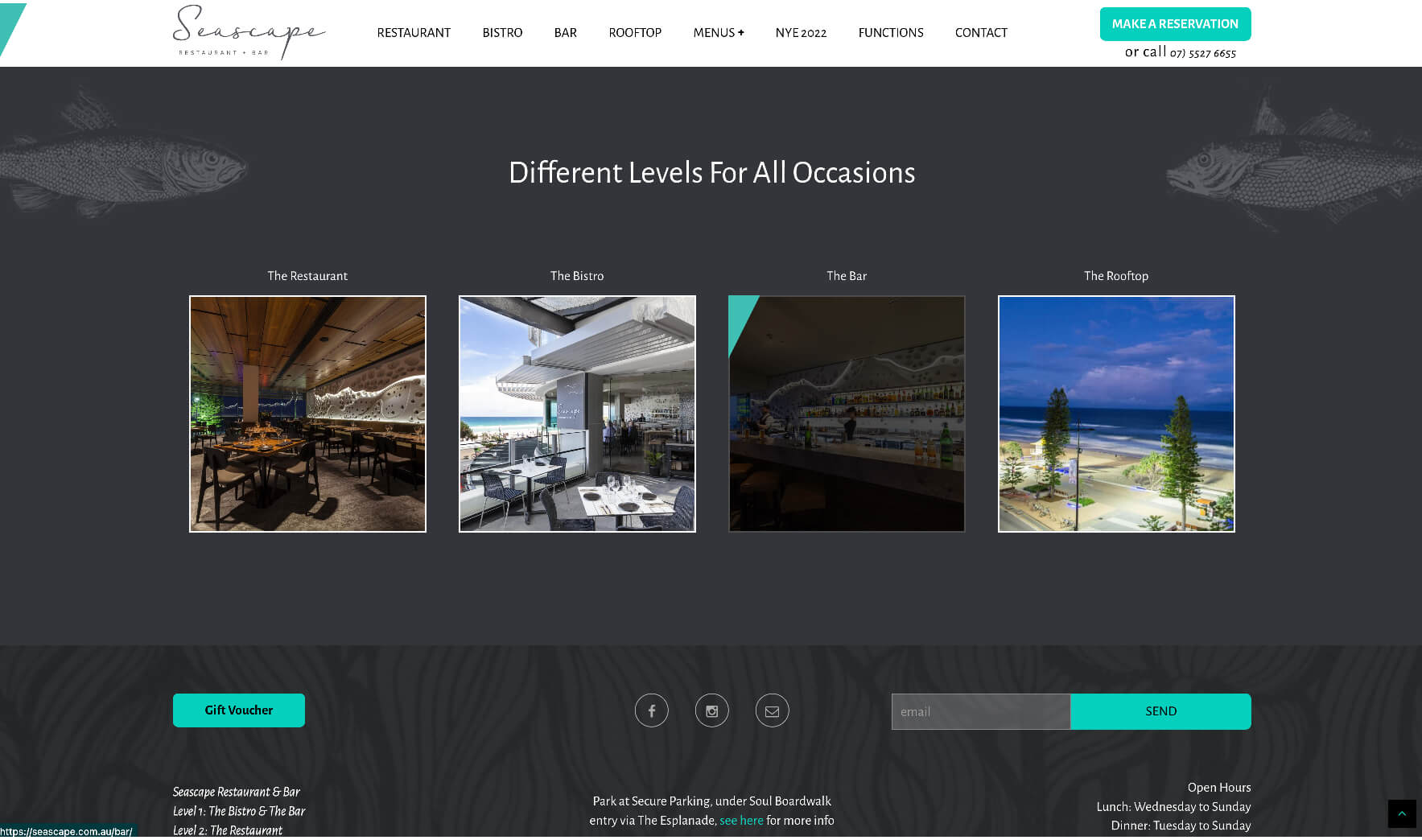 An amazing new fine-dining restaurant and bar in the heart of Surfers, Seascape caters for a range of users, from tourists and families to critics and corporate high flyers. We wanted to carry over the feel of the awe-inspiring three-level venue into the website and achieved this with large impressive images and detailed content. Each level has its own online menu, drink lists and image gallery.