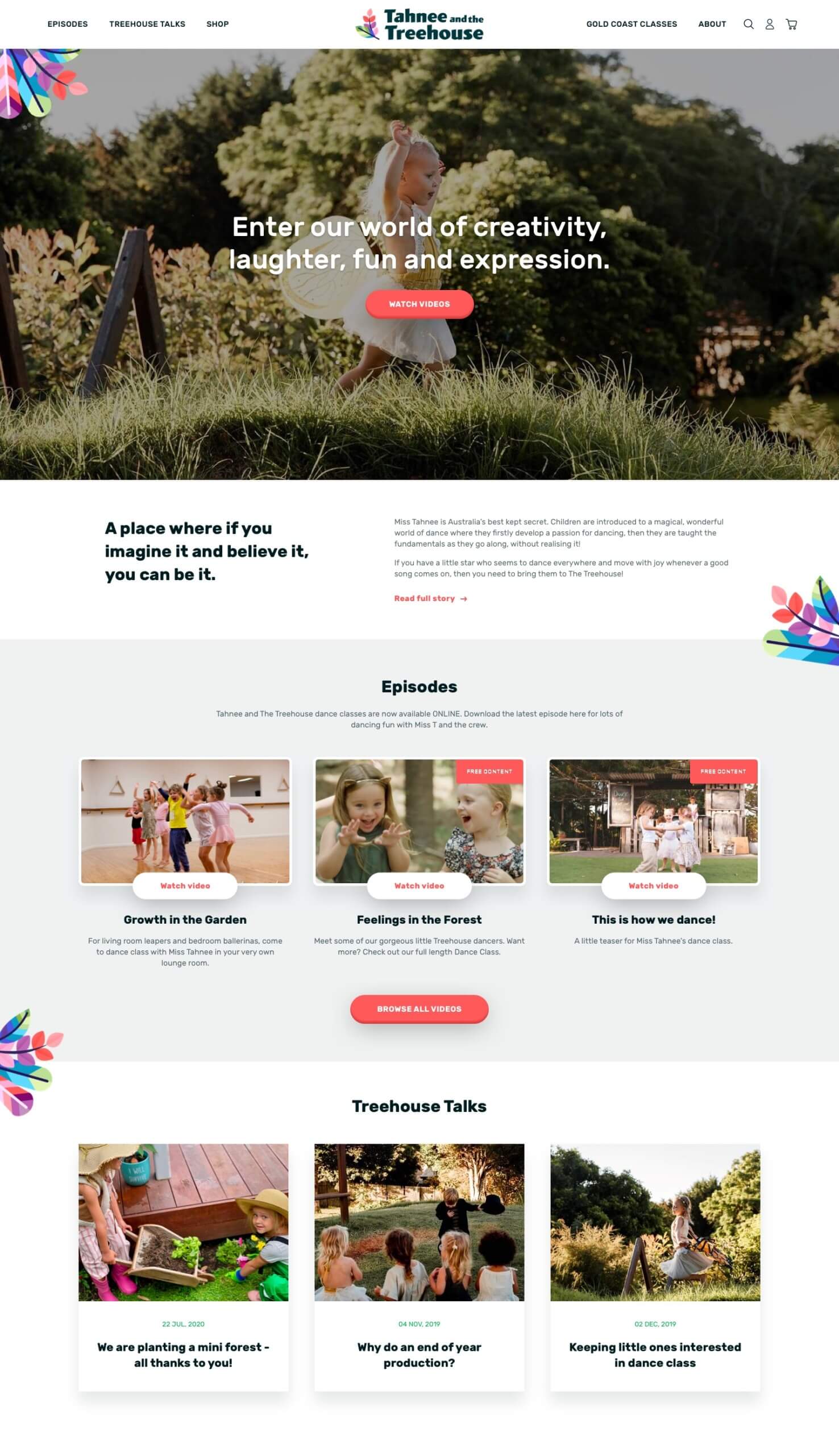 Tahnee and the Treehouse is a dance school with a difference. They provide a happy and nurturing place where children can learn about dance, movement, and music. Renowned dance teacher Tahnee came to Thrive in need of a complete overhaul of her existing website. The new focus saw a web-based platform where users worldwide can pay for and watch video episodes of her children's dance classes from the comfort of their own home. We absolutely loved working on this project with Tahnee, including custom branding where graphic elements were added to feature on everything from web animations through to printed pant designs.